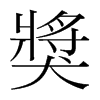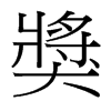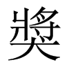 《廣韻》卽兩切,音槳。《玉篇》助也,成也,欲也,譽也,嗾犬厲之也。今作㢡。《廣韻》說文本作𤟌。《集韻》从大作奬。詳大部奬字註。