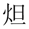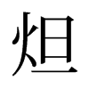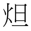 炟【巳集中】【火部】 康熙筆画:9画,部外筆画:5画