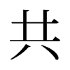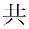 〔古文〕𦱹《唐韻》《集韻》《韻會》《正韻》𠀤渠用切,蛩去聲。《說文》同也。从廿卄。《徐曰》廿音入,二十共也,會意。《玉篇》同也,衆也。《廣韻》皆也。《增韻》合也,公也。《禮·王制》爵人于朝,與士共之。《史記·張釋之傳》法者,所與天下共也。
