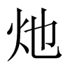 灺【巳集中】【火部】 康熙筆画:7画,部外筆画:3画