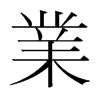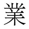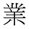 〔古文〕𤑽𤎸《唐韻》魚怯切《集韻》逆怯切,𠀤音鄴。《說文》業,大板也,所以飾懸鐘鼓。《詩·大雅》虡業維樅。《疏》植鐘磐之木,植者名爲虡,橫牽者爲栒,栒上加大版爲之飾爲業。刻板捷業如鋸齒,故曰業。
