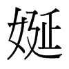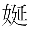 《廣韻》以然切《集韻》夷然切,𠀤音延。女字。一曰美好貌。