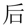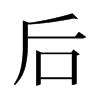 《唐韻》《集韻》《正韻》胡口切《韻會》很口切,𠀤音後。《說文》繼體君也,象人之形。施令以告四方,故之从一,口。發號者,君后也。《書·仲虺之誥》徯我后。《易·泰卦》后以財成天地之道。《禮·檀弓》夏后氏堲周。《疏》夏言后者,白虎通云以揖讓受于君,故稱后。