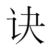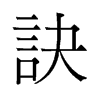 《唐韻》《集韻》《韻會》𠀤古穴切,音玦。《說文》訣別也。《增韻》辭也。《史記·吳起傳》東出衞郭門,與其母訣。《後漢·雷義傳》輕行相候,以展訣別。