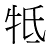《唐韻》都禮切《集韻》《韻會》典禮切,𠀤音邸。《說文》觸也,从牛氐聲。《唐韻》角觸。《揚子·方言》牴,會也。雍梁之閒曰牴,秦晉亦曰牴。