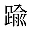 《集韻》《韻會》𠀤容朱切,音兪。《說文》越也。《博雅》遠也,渡也。《易·謙卦》𤰞而不可踰。《書·費誓》無敢𡨥攘踰垣牆。《禮·曲禮》禮不踰節。《左傳·隱元年》士踰月外姻至。《註》踰月,度月也。