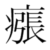 《字彙》知亮切,音帳。滿也。《正字通》俗痮字。本作脹。古借用張。