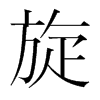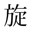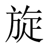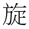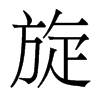 (旋)周旋、逗。旌旗之𢫾𪎮也。左傳曰。師之耳目。在吾旗𡔷。進退從之。手部𪎮下曰。旌旗所以𢫾𪎮者也。旗有所鄉。必運轉其杠。是曰周旋。引伸爲凡轉運之偁。从㫃疋。句。疋、逗。足也。杠之柱地者是旌旗之足也。似沿切。十四部。