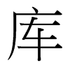 《唐韻》《集韻》《韻會》《正韻》𠀤苦故切,苦去聲。《說文》兵車藏也。从車,在广下。《釋名》庫,舍也。物所在之舍也,故齊魯謂庫曰舍。《禮·月令》審五庫之量。《蔡邕·章句》一曰車庫,二曰兵庫,三曰祭庫,四曰樂庫,五曰宴庫。