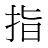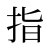 〔古文〕𢫾《唐韻》職雉切《集韻》《韻會》軫視切,𠀤音旨。《說文》手指也。《易·說卦》艮爲指。《疏》取其執止物也。《左傳·宣四年》子公之食指動。《疏》一巨指,二食指,三將指,四無名指,五小指。