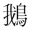 鵝【亥集中】【鳥部】 康熙筆画:18画,部外筆画:7画