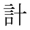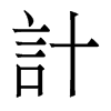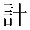 《唐韻》古詣切《集韻》《韻會》《正韻》吉詣切,𠀤音繼。《說文》會也,算也。从言从十。徐曰:十者,物成數。會意。《左傳·昭三十二年》士彌牟營成周,計丈數。《禮·內則》十年,出就外傅,居宿于外,學書計。《註》書謂六書,計謂九數。《周禮·天官》小宰以六計弊羣吏之治。《註》弊,斷也。《疏》六計,謂善、能、敬、正、法、辨,皆以廉爲本,計其功過多少而聽斷之也。