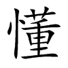 《正韻》多動切,音董。懵懂,心亂也。◎按廣韻集韻,有𢤦字無懂字。正韻从省,收懂字,失𢤦字,而字彙兩字𠀤收。此古今筆畫之譌,而字愈多也。