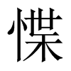 《廣韻》徒協切《集韻》達協切,𠀤音牒。《廣韻》思懼貌。《後漢·竇后紀》宮房惵息。