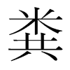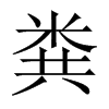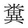 又非問切,音分。掃棄之也。《韓愈文》糞除天下山川。《集韻》又作𥻎𡐢𡏙坋𡓴𣀰𡏰。《韻會》本作粪,隷作糞。或作𢹔。亦作拚,又作𡊄。《玉篇》作𥻔。《海篇》作𥼢。《字彙補》作𥻪。𥼢字原作米下黑,或𥼯字。