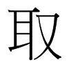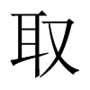 《唐韻》七庾切《集韻》《韻會》《正韻》此主切,𠀤娶上聲。《說文》捕取也。从又耳。《玉篇》資也,收也。《廣韻》受也。《增韻》索也。《禮·儒行》力行以待取。《史記·魯仲連傳》爲人排難解紛,而無取也。《管子·白心篇》道者,小取焉則小得福,大取焉則大得福。