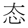 (1) (会意。从心,从能。简体字为形声。从心,太声。本义:姿态,姿势与状态)