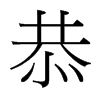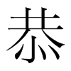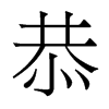 《廣韻》九容切《集韻》居容切,𠀤音供。《說文》肅也。《書·洪範》貌曰恭。《禮·曲禮》君子恭敬,撙節退讓以明禮。《疏》在貌爲恭,在心爲敬。貌多心少爲恭,心多貌少爲敬。