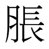 《廣韻》《集韻》《韻會》《正韻》𠀤知亮切,音帳。腹滿也。《玉篇》左氏傳,將食,脹,如廁。脹,痛也。◎按左傳成十年,作張如厠,註,中亮反。《通雅》臚脹,謂腹鼓脹也。《急就章》寒氣泄注腹臚脹。