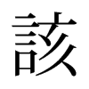 (該)軍中約也。凡俗云當該者皆本此。从言。亥聲。古哀切。一部。讀若心中满該。該同餩。飽息也。詳口部噫下。
