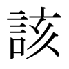 又《增韻》載也。《廣韻》備也,咸也,兼也,皆也。《穀梁傳·哀元年》此該之變而道之也。《註》該,備也。《前漢·律歷志》該藏萬物。《揚子·太𤣥經》萬物該兼。
