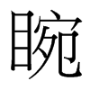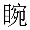 《廣韻》於遠切《集韻》委遠切,𠀤音婉。《類篇》目開貌。《玉篇》小嫵媚也。