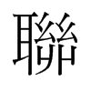 《唐韻》力延切《韻會》陵延切《正韻》靈年切,𠀤音連。《說文》連也。从耳,耳連於頰。从絲,絲連不絕也。《張衡·思𤣥賦》繽聯翩兮紛暗曖。《陸機·文賦》浮藻聯翩,若翰鳥纓繳,而墜曾雲之峻。