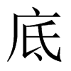 (2) 如:鞋底;箱底;桶底。引申为下层,下面。如:底下人(仆役);底土层;底冰