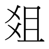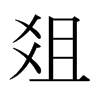 《正字通》俎字之譌。◎按說文,玉篇,類篇俱列且部,从仌,不从爻。字彙云:爼俗俎字。非。《正字通》是。
