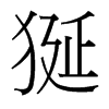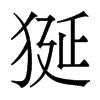 《廣韻》以然切《集韻》夷然切,𠀤音延。《玉篇》獸名。《廣韻》獌狿,大獸,長八尺。《集韻》似狸而長,或作蜒。《史記·司馬相如傳》窮奇獌狿。《揚雄·校獵賦》斮巨狿。