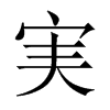 〔古文〕宲𡾍《唐韻》《廣韻》神質切《集韻》《類篇》《韻會》食質切,𠀤音失。《說文》實,富也。从宀从貫。貫,貨貝也。《廣韻》誠也,滿也。《增韻》充也,虛之對也。《易·本義》乾一而實,坤二而虛。《孟子》充實之謂美,充實而有光輝之謂大。《宋程頤曰》心有主則實,實則外患不能入。