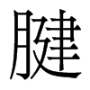 腱【未集下】【肉部】 康熙筆画:15画,部外筆画:9画