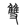 《韻會》雙,俗作双,非。(雙)《唐韻》所江切《集韻》《韻會》疎江切,𠀤音䉶。《說文》隹二枚也。从雔,又持之。《後漢·王喬傳》有雙鳧,從東南飛來。