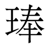 《唐韻》《正韻》邊孔切《集韻》《韻會》補孔切,𠀤音玤。《說文》佩刀上飾。天子以玉,諸侯以金,从玉,奉,意兼聲。《徐曰》刀削上飾也。琫之言捧也,若捧持之也。上謂首也。《釋名》刀室口之飾曰琫。琫,捧也,捧束口也。《詩·小雅》鞞琫有珌。《傳》鞞,容刀鞞也。琫上飾,珌下飾。