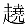 (趬)行輕皃。今俗語輕趬。當用此字。从走。堯聲。牽遙切。二部。一曰趬、舉足也。今俗語謂舉足正如此。按趬趞雙聲字。疑篆當先趬後趞。趬下曰。趬趞行輕皃。一曰趬舉足也。从走堯聲。趞下云。趬趞也。从走昔聲。今本葢淺人所亂。