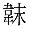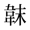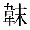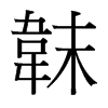 又《集韻》勿發切,音㒝。與韤同。詳後韤字註。《字彙》韎與𠇱同,宜从末,中畫短。莫佩切者,宜从未,中畫長。○按說文从末無从未,字彙强分爲二,非也。《正字通》駁字彙之誤,而以諸書爲皆从未,尤非。𩎟。