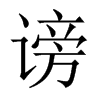 《唐韻》《集韻》《韻會》《正韻》𠀤補浪切,牓去聲。《說文》毀也。《廣雅》惡也。《玉篇》誹也,對也。人道其惡也。《增韻》訕也。《左傳·莊二十二年》羈旅之臣,敢辱高位,以速官謗。《史記·孝文紀》朝有進善之旌,誹謗之木。《戰國策》樂羊反而語功,文侯示之謗書一篋。