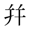 《唐韻》府盈切《集韻》《韻會》𤰞盈切《正韻》補明切,𠀤餅平聲。《說文》本作𢆙。从二人,幵聲。一曰从持二干爲𢆙。隷作幷。相从也。《周禮·冬官考工記》輿人爲車。凡居材大與小無幷。《註》幷謂偏邪相就也。