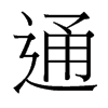 (18) 通行;通用 。如:通关文牒(通行证);通率(通用的比例);通语(普遍通行的语言);通义(通行不变的道理、法则);通礼(通行的礼仪)