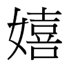 嬉【丑集下】【女部】 康熙筆画:15画,部外筆画:12画