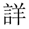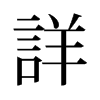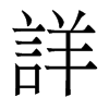 《唐韻》似羊切《集韻》《韻會》《正韻》徐羊切,𠀤音翔。《說文》審議也。《玉篇》審也,論也,諟也。《增韻》語備也。《書·蔡仲之命》詳乃視聽。《傳》審也。《詩·衞風》中冓之言,不可詳也。《傳》詳言之也。《穀梁傳·襄二十九年》詳其事,賢伯姬也。《史記·封禪書》其詳不可得而記聞。《前漢·儒林傳》詳延天下方聞之士。《註》詳,悉也。