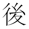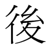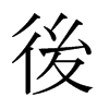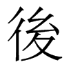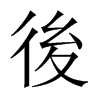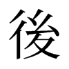 〔古文〕𨒥𢔏《唐韻》《正韻》胡口切《集韻》《韻會》很口切,𠀤音厚。《說文》遲也。从彳幺夂者,後也。《徐鍇曰》幺,猶𦌾躓之也。《玉篇》前後也。《廣韻》先後也。《詩·小雅》不自我先,不自我後。