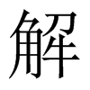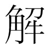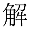 《唐韻》《正韻》佳買切《集韻》《韻會》舉嶰切,𠀤皆上聲。《說文》判也。从刀判牛角。《莊子·養生主》庖丁解牛。《左傳·宣四年》宰夫解黿。《前漢·𨻰湯傳》支解人民。《註》謂解𢧵其四支也。