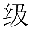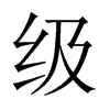 (級)絲次弟也。本謂絲之次弟。故其字从糸。引申爲凡次弟之偁。階之次弟。曲禮云拾級聚足連步以上是也。尊卑之次弟。賈生云等級分明而天子加焉、故其尊不可及是也。後漢書注。秦法斬首多者進爵一級。因謂斬首爲級。从糸。及聲。居立切。七部。
