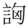 《廣韻》《集韻》《正韻》𠀤許容切,音凶。《說文》說也。《類篇》訟也,盈也。一曰衆言。《五代史·四夷兀欲傳》聚而謀者詾詾。