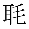 又藤名。《齊民要術》毦藤,大小如苹蒿,蔓衍生。○按《服虔·通俗文》毛飾曰毦,則凡絲羽革草之下垂者,𠀤可以毦名矣。與目部眊不同。《正韻牋補》毦从耳。誤从目,讀作眊,謂𤣥德好結帽,譌久矣。
