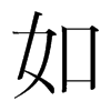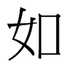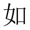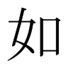 (如)從隨也。從隨卽隨從也。隨從必以口。从女者、女子從人者也。幼從父兄。嫁從夫。夫死從子。故白虎通曰。女者、如也。引伸之、凡相似曰如。凡有所往曰如。皆從隨之引伸也。从女。从口。人諸切。五部。