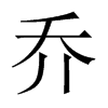 《唐韻》巨嬌切《集韻》《韻會》渠嬌切,𠀤音僑。《說文》高而曲也,从夭从高省。《爾雅·釋木》句如羽喬。《註》樹枝曲卷,似鳥毛羽。《又》下句曰朻,上句曰喬,如木楸曰喬。《又》小枝上繚曰喬。《書·禹貢》厥木惟喬。《傳》喬,高也。《詩·周南》南有喬木。《傳》喬,上竦也。