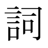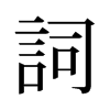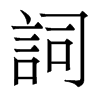 〔古文〕𧥝《唐韻》似兹切《集韻》《韻會》《正韻》詳兹切,𠀤音祠。《說文》意內而言外也。《釋名》嗣也。令撰善言,相嗣續也。《廣韻》說也。《正韻》言也。《字彙》文也。《公羊傳·昭十一年》春秋之信史也。其詞則丘有罪焉爾。《史記·儒林傳》是時天子方好文詞。《晉書·郭璞傳》璞詞賦爲中興之冠。《舊唐書·張九齡傳》張說常謂人曰:後來詞人稱首也。