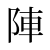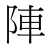 《廣韻》《集韻》《韻會》《正韻》𠀤直刃切,音𨳌。《玉篇》旅也。《廣韻》列也。《史記·淮隂侯傳》信乃使萬人先行出,背水陣。《後漢·禮儀志》兵官皆肄孫吳兵法六十四陣。